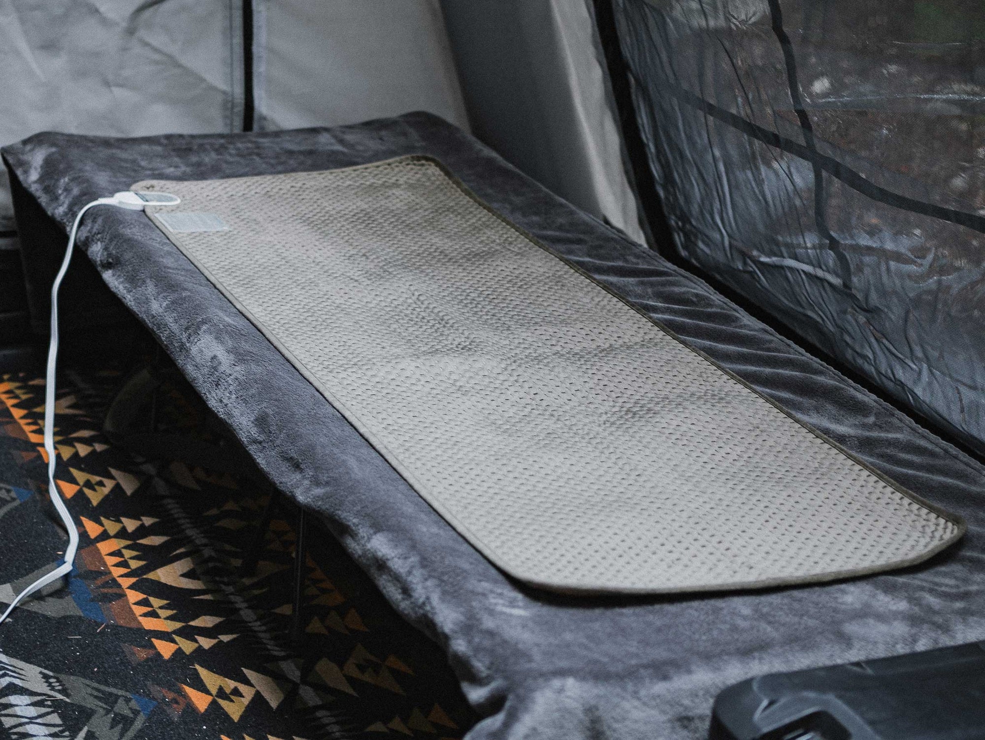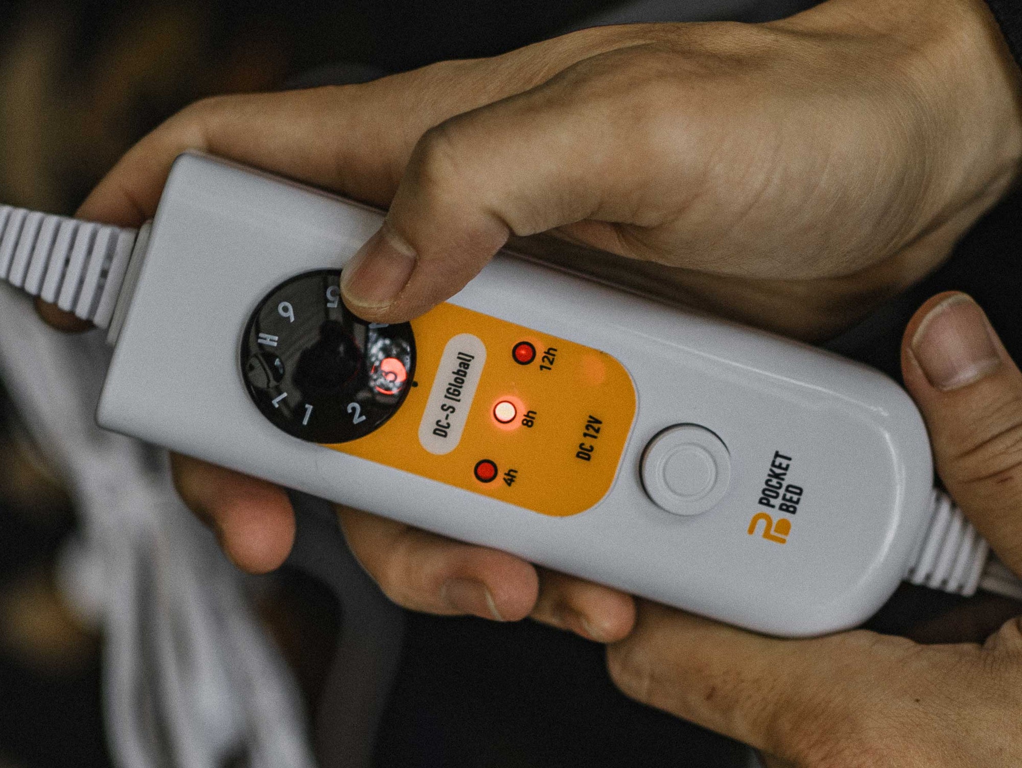 Designed with the outdoors in mind, the DC-S sets itself apart from the rest by being powered via DC-12V, which allows a large range of power supply options. Results from tests with the Jackery Explorer 1000W Power Bank showed that two DC-S mats ran all night on moderate heat settings (Level 3-4), usually leaving more than 50% of the battery the next morning.